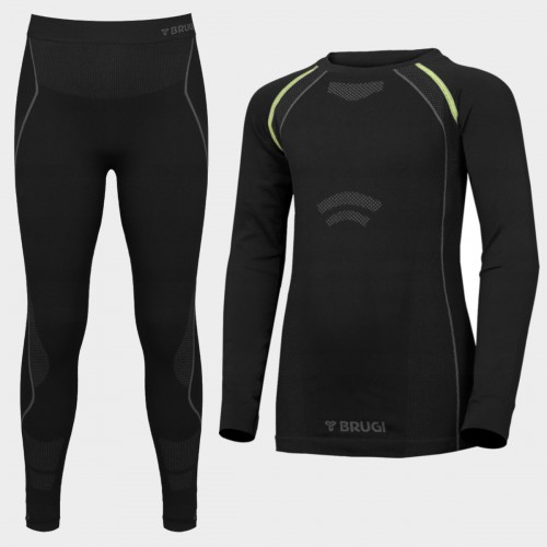 Bielizna Termoaktywna Brugi Chłopięca Spodnie Bluza Techniczna Czarna